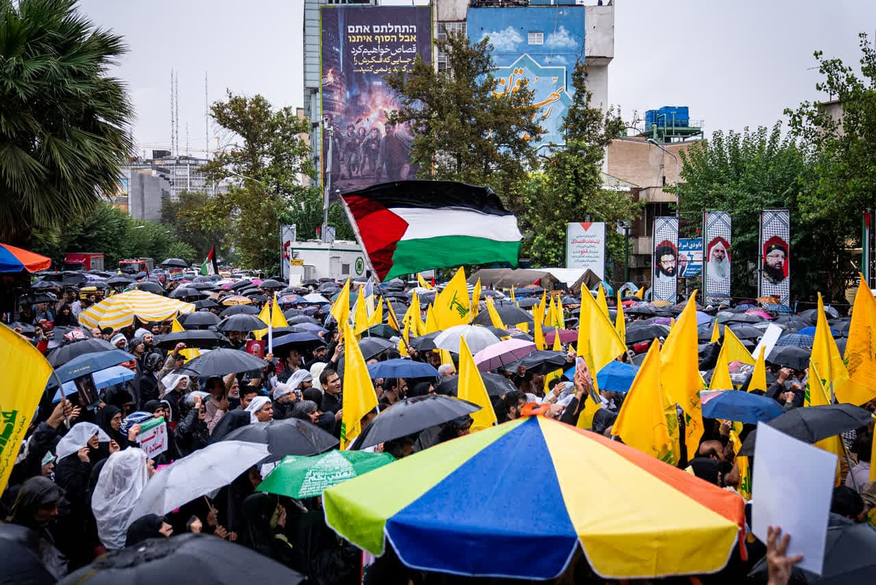 غروب امروز میدان فلسطین غمگین‌تر از روزهای دیگر پاییز بود؛ غمگین‌تر و سردتر از همیشه. کاش می‌شد چشم‌های اشکبار و قلب‌های زار را روایت کرد. ولی سید از آن بالا می‌دید... تصاویر تجمع امروز را می‌بینید در میدان فلسطین؛ باران و غم و اشک در فراق سید مقاومت.