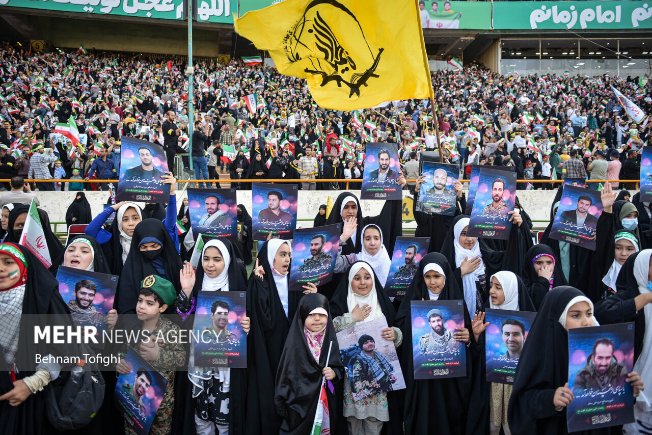 שירת המונים של ההמנון "סלאם פרמנדה" באצטדיון אזאדי בטהראן