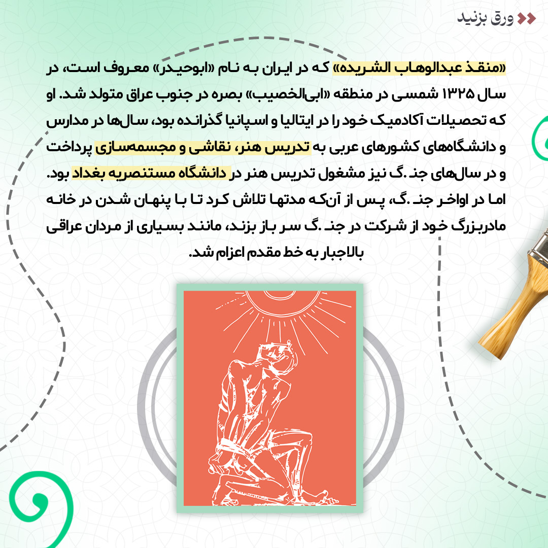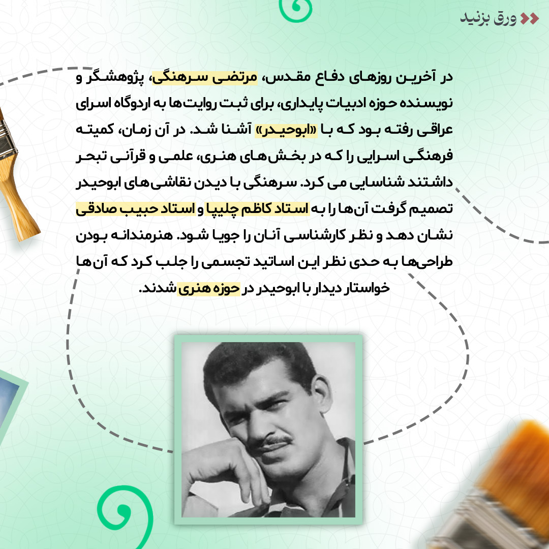 به گزارش روابط عمومی سازمان تبلیغات اسلامی، در آخرین روزهای دفاع مقدس، نقاش اسیری از اردوگاه اسرای عراقی تهران راهی حوزه هنری شد. هنرمندی که به خواست خود تسلیم نیروهای ایرانی شده بود و تا مدتی پس از آزادی نیز در ایران ماند. به مناسبت هفته دفاع مقدس، در این شماره از نشریه دیجیتال قصه نقاش اسیری را مرور میکنیم که با دستور مستقیم رهبر انقلاب آزاد شد.