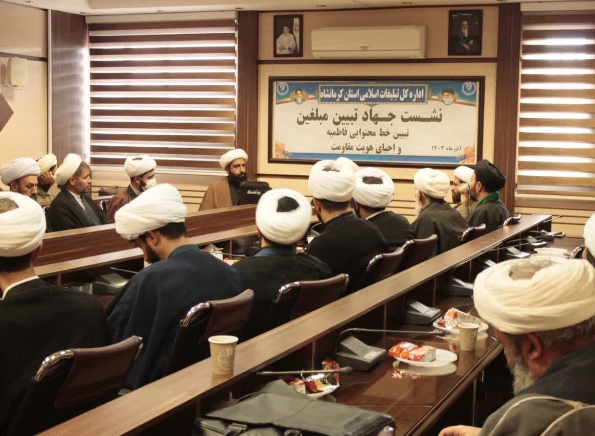 نشست جهاد تبیین مبلغین و هماندیشی درباره خط محتوایی فاطمیه و گفتمان مقاومت، با حضور حجتالاسلام میرزامحمدی در کرمانشاه برگزار شد.