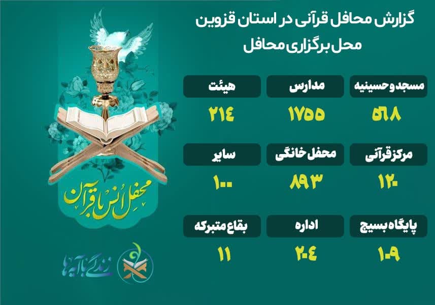 بر اساس آمار منتشر شده، بیش از ۳۶۰۰ محفل قرآنی در نقاط مختلف استان قزوین برگزار شده است که مدارس با بیش از ۱۷۵۰ محفل، بیشترین سهم را در میزبانی این برنامههای معنوی دارند.