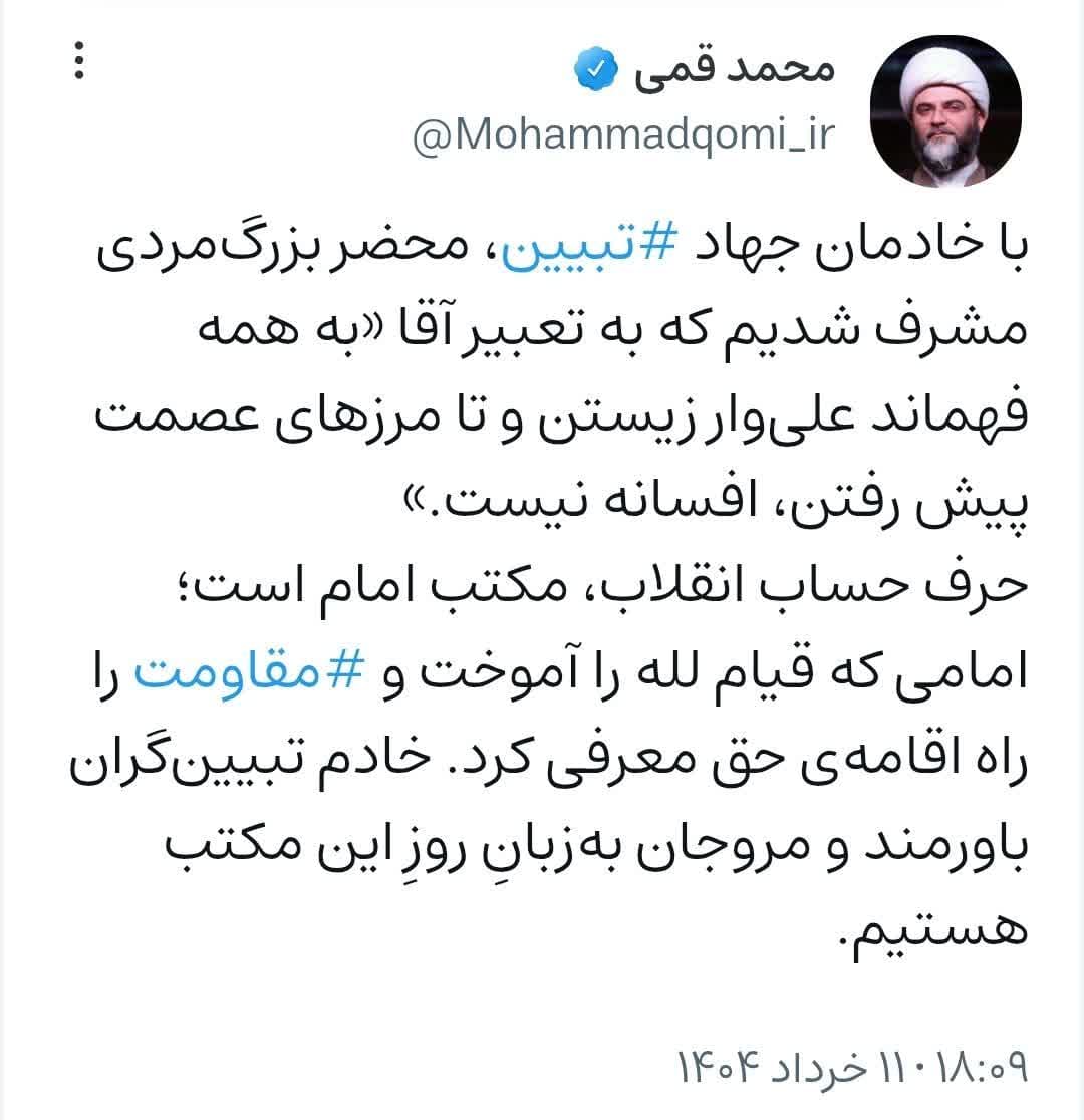 ۱۱ خرداد | حجتالاسلام قمی در صفحه شخصی خود نوشت؛