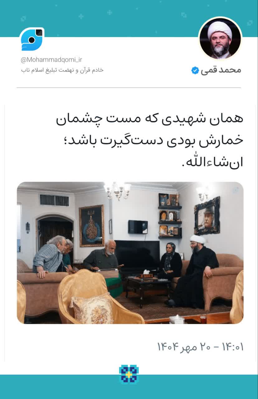 ۲۰ مهر | حجتالاسلام محمد قمی در صفحه شخصی خود نوشت
