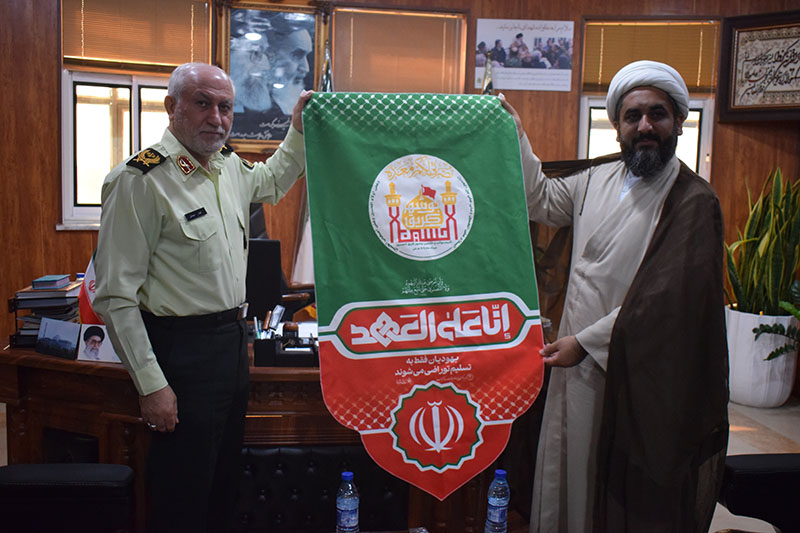مدیرکل تبلیغات اسلامی بوشهر در نشست با فرمانده انتظامی استان، ضمن تجلیل از تلاشهای نیروی انتظامی در تأمین امنیت پایدار، کتیبه نمادین «همعهدی بوشهر طریق الحسین» را از سوی ادارهکل تبلیغات اسلامی به فرمانده انتظامی بوشهر اهدا کرد.