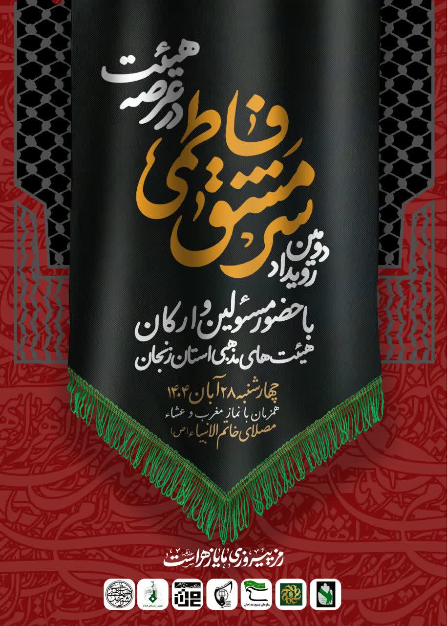 به گزارش روابط عمومی سازمان تبلیغات اسلامی، دومین دوره رویداد «سرمشق فاطمی در عرصه هیئت» با حضور ستایشگران، مسئولان هیئتها و ارکان هیئات مذهبی استان زنجان، روز چهارشنبه ۲۸ آبان ۱۴۰۴ در مصلی خاتمالانبیاء (ص) برگزار خواهد شد.