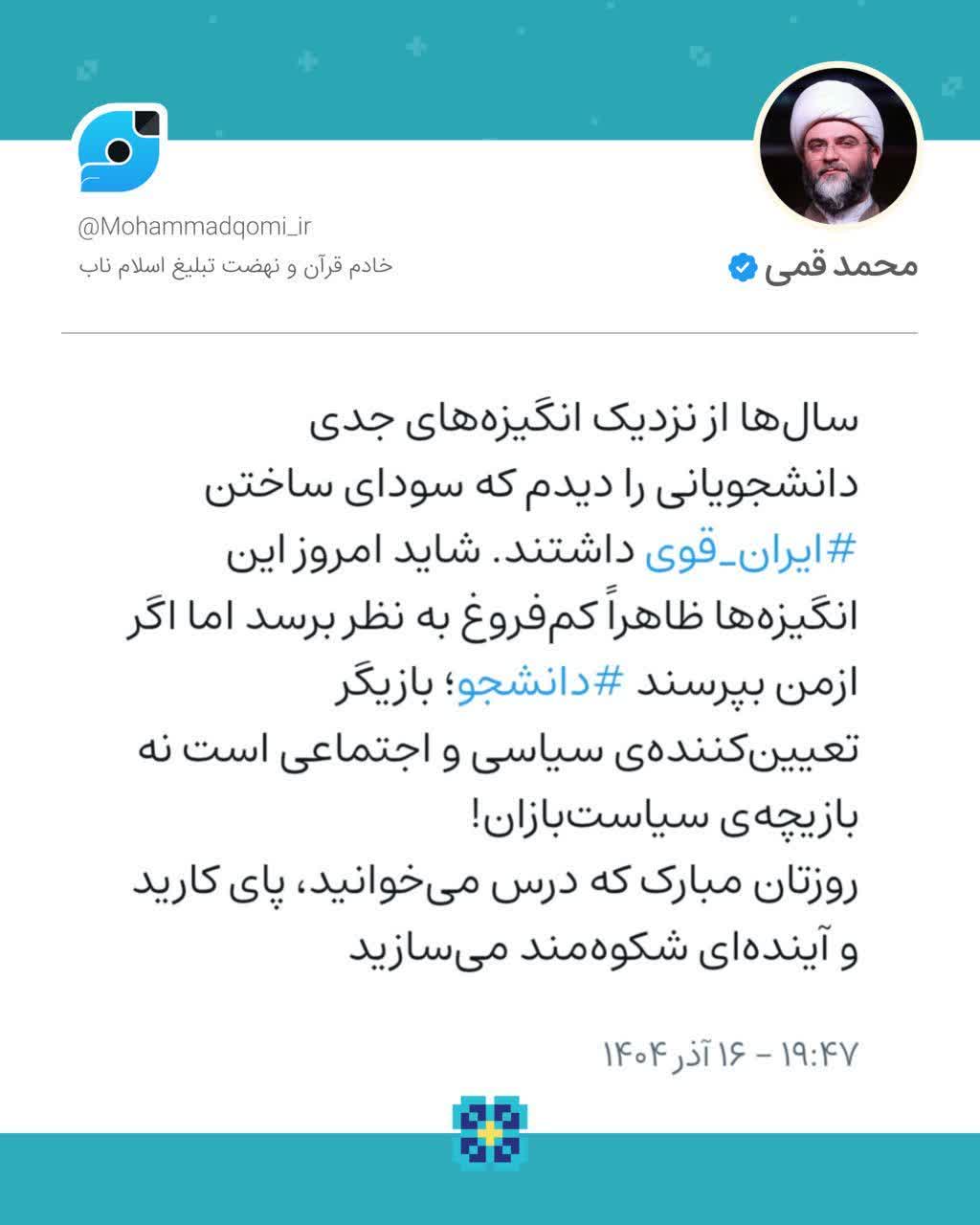 ۱۶ آذر | حجتالاسلام محمد قمی در صفحه شخصی خود نوشت؛