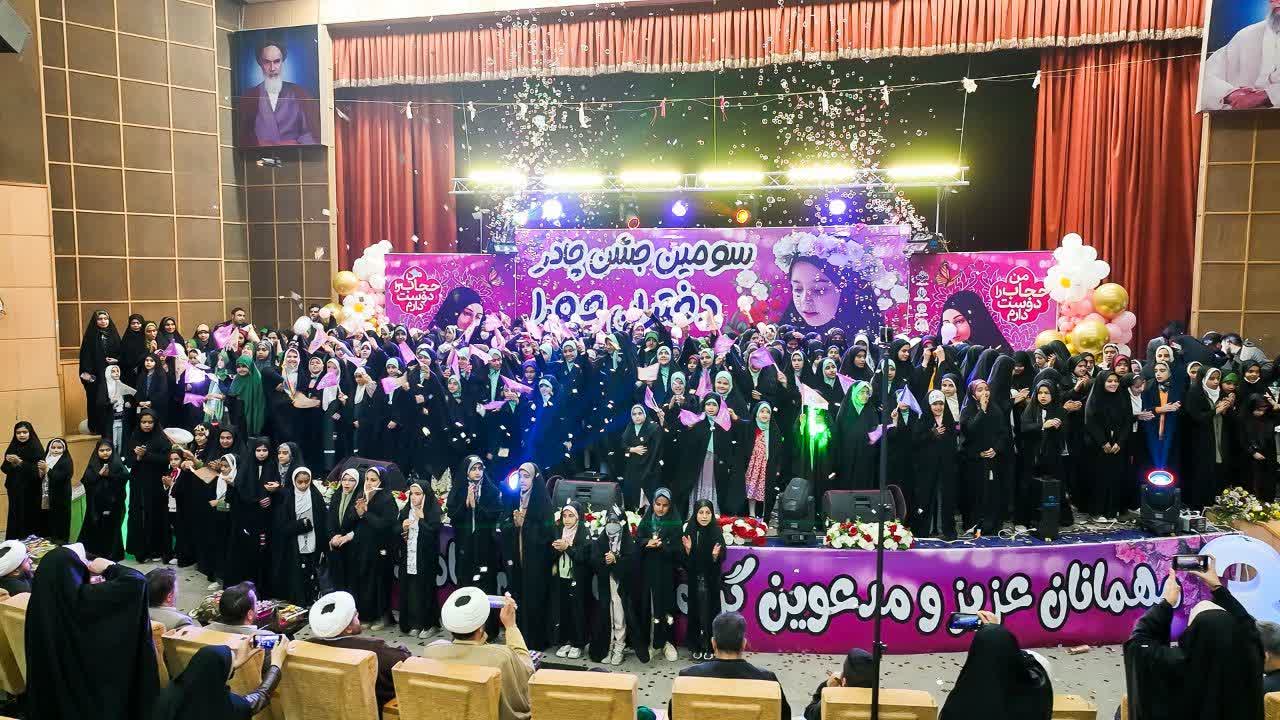 این مراسم با تلاوت آیات نورانی قرآن کریم آغاز گردید و با اجرای برنامههای متنوع فرهنگی ادامه یافت. در بخش اصلی مراسم، ۴۸۴ چادر نماز به دختران شرکتکننده اهدا شد تا نمادی از هدیهای فاطمی به نسل نوجوان باشد. اجرای طنز مذهبی با محوریت حجاب و عفاف، حضوری پرشور از خواننده انقلابی، سرودهای دستهجمعی توسط دختران و گفتوگوهای صمیمی با خانوادههای معظم شهدا از جمله برنامههای جذاب این جشن بود. حضور خانوادههای شهدا و روایتهای آنان از ایثار و حجاب مادران و همسران شهید، لحظات تأثیرگذاری را برای حاضران رقم زد.
